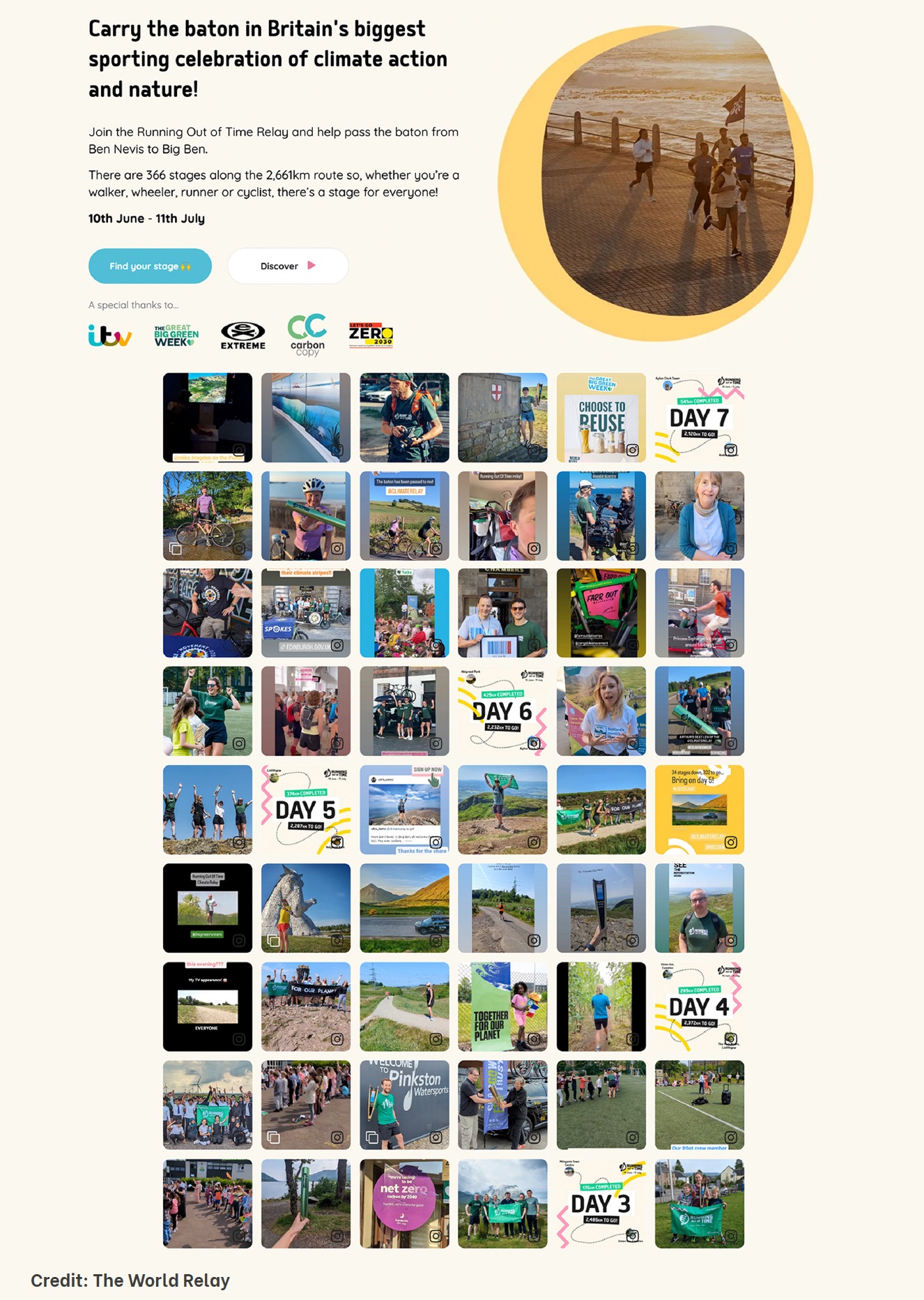 Over the last three years, Carbon Copy has been raising awareness and engaging different people in local climate action through culture – with a particular focus on sport and on mass participation events – and has enjoyed an incredible and high-impact partnership with The World Relay.